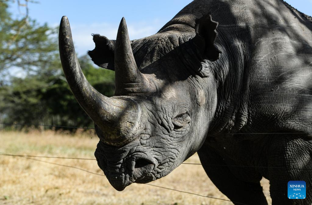A black rhino is seen at Ol Pejeta Conservancy in Laikipia County, Kenya, Feb. 4, 2023. (Xinhua/Han Xu)