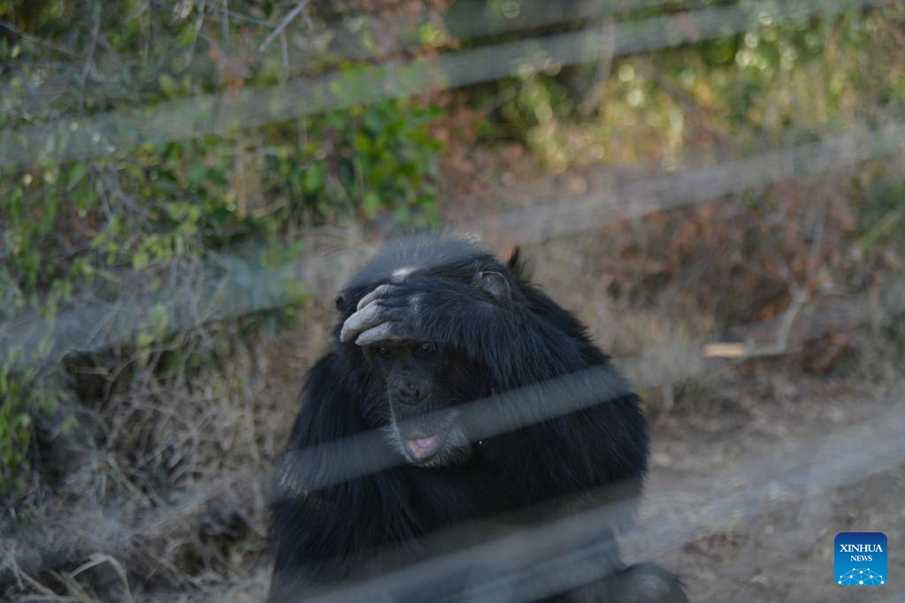 A chimpanzee is seen at Ol Pejeta Conservancy in Laikipia County, Kenya, Feb. 4, 2023. (Xinhua/Han Xu)