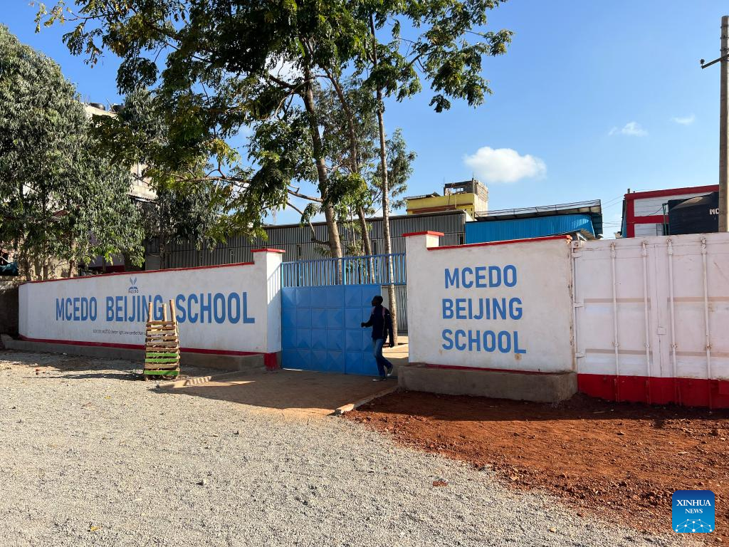Photo taken on Jan. 31, 2023 shows Mcedo Beijing School in Mathare slums in Nairobi, Kenya. The umbrella body for Chinese enterprises operating in Kenya on Feb. 14 donated funds to support the feeding program at Mcedo Beijing School based in Mathare slums in Nairobi. (KCETA/Handout via Xinhua)