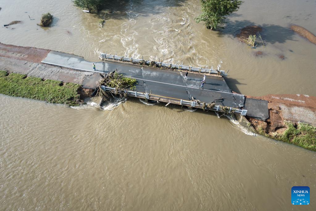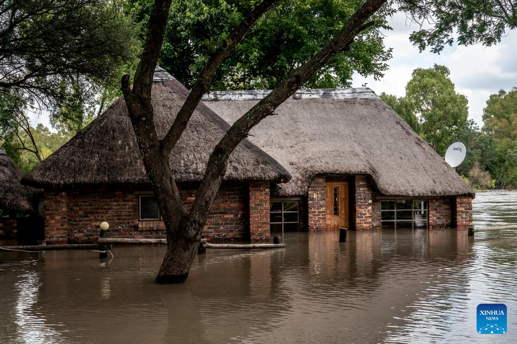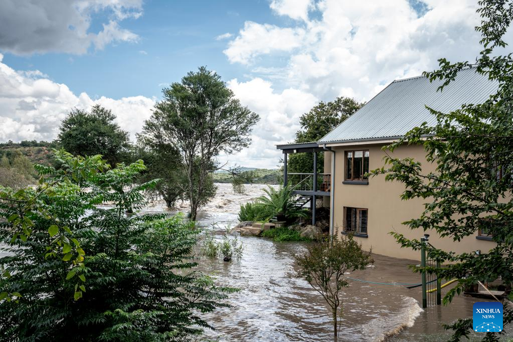 This photo taken on Feb. 19, 2023 shows flooded area in Parys, South Africa. The Vaal dam exceeded its maximum capacity due to heavy rainfall and caused floods in the Vaal River. (Photo by Shiraaz Mohamed/Xinhua)