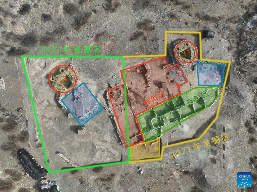 This file photo shows excavation area of a porcelain kiln site from the Western Xia Dynasty (1038-1227) in Helan County, northwest China's Ningxia Hui Autonomous Region. Six historic sites dating back to the Paleolithic period at the earliest were listed as China's new archaeological discoveries of 2022 at a forum on Wednesday. (Xinhua)