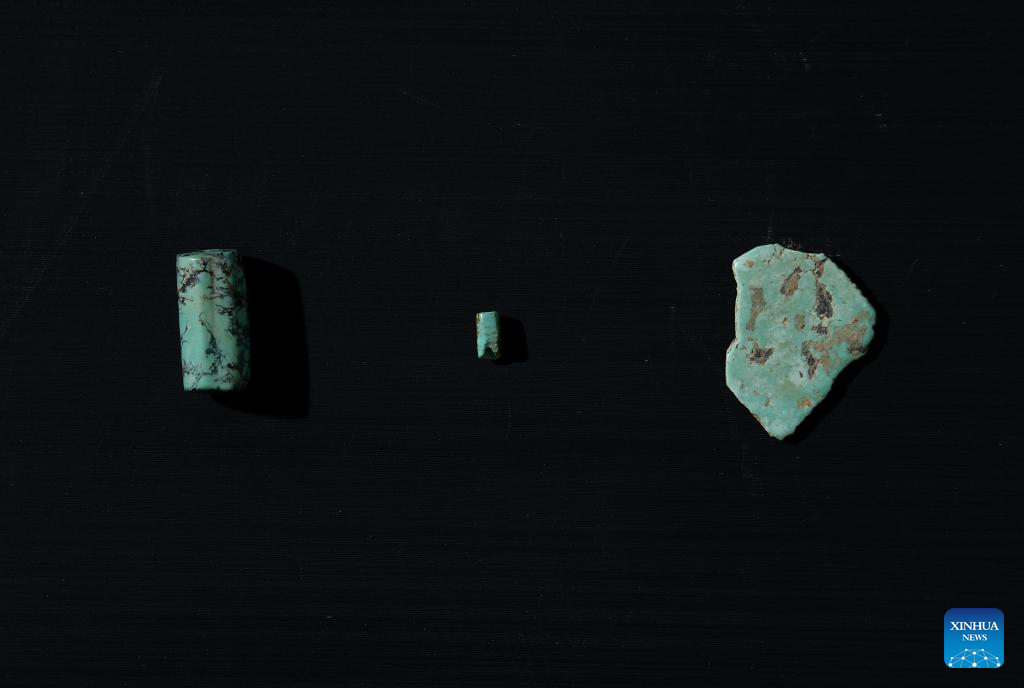 This photo taken on Aug. 25, 2022 shows turquoise ware unearthed from a Neolithic ruins in Qingyang, northwest China's Gansu Province. Six historic sites dating back to the Paleolithic period at the earliest were listed as China's new archaeological discoveries of 2022 at a forum on Wednesday. (Xinhua/Li He)