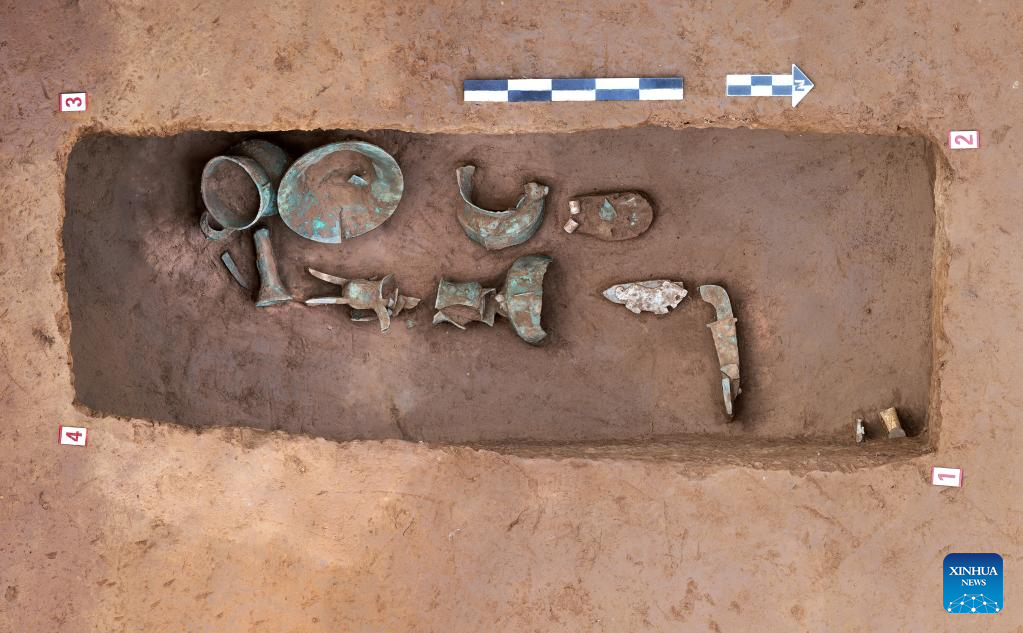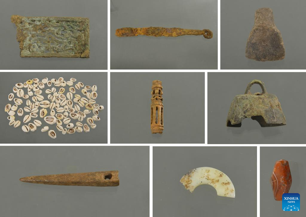 This combo photo shows cultural relics unearthed from Hebosuo relics site dating back to the Bronze Age, in Kunming, southwest China's Yunnan Province. Six historic sites dating back to the Paleolithic period at the earliest were listed as China's new archaeological discoveries of 2022 at a forum on Wednesday. (Xinhua)