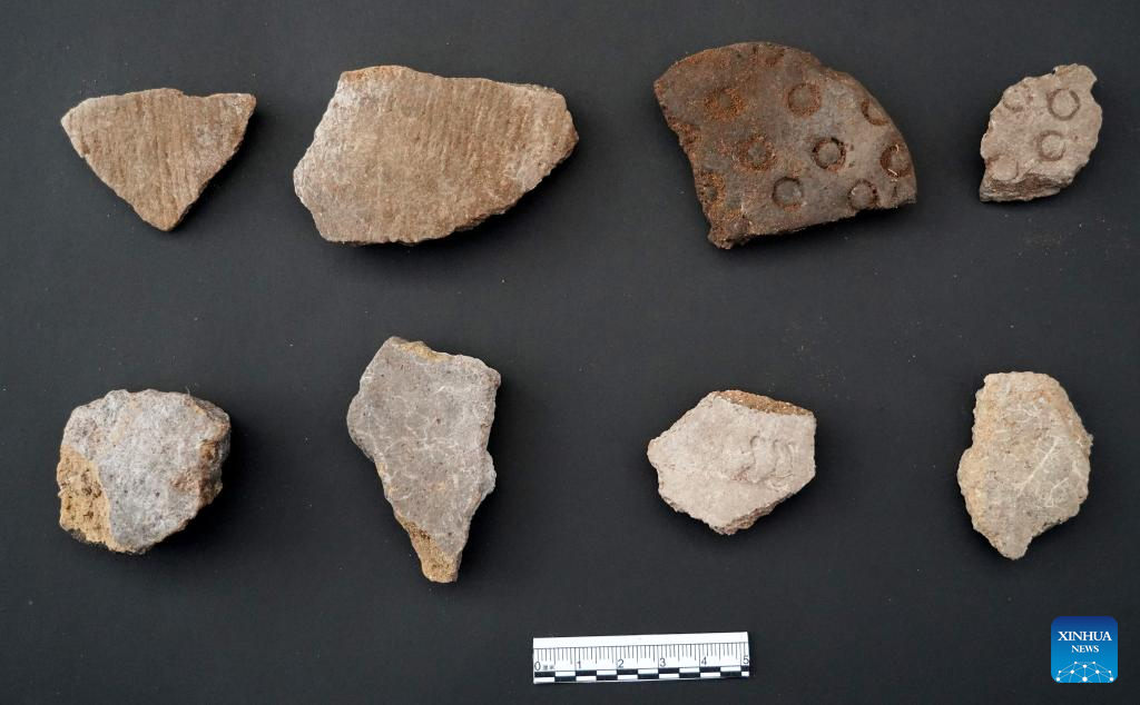 This file photo shows pottery slices unearthed from a Neolithic ruins in Shangyi County, north China's Hebei Province. Six historic sites dating back to the Paleolithic period at the earliest were listed as China's new archaeological discoveries of 2022 at a forum on Wednesday. (Xinhua)