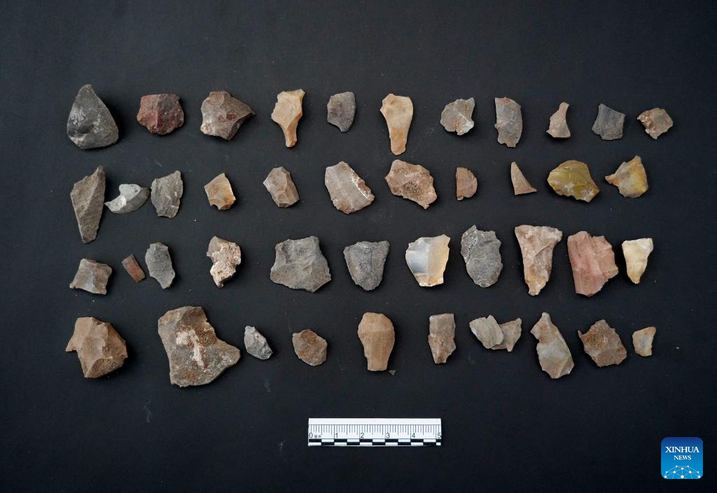 This file photo shows tools unearthed from a Neolithic ruins in Shangyi County, north China's Hebei Province. Six historic sites dating back to the Paleolithic period at the earliest were listed as China's new archaeological discoveries of 2022 at a forum on Wednesday. (Xinhua)