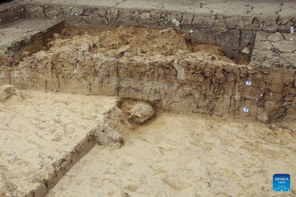 This file photo taken in 2022 shows an archaeological excavation site of the Yin Ruins dating back to the Shang Dynasty (1600-1046 B.C.), in the northwest suburbs of Anyang, central China's Henan Province. Six historic sites dating back to the Paleolithic period at the earliest were listed as China's new archaeological discoveries of 2022 at a forum on Wednesday. (Xinhua)
