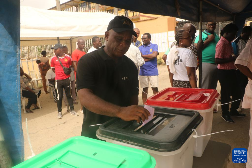 A man casts his vote at a polling station in Ikeja, Lagos state, Nigeria, on Feb. 25, 2023. Nigeria's presidential and parliamentary elections kicked off Saturday as voters went to the polls nationwide to elect a new president and members of the national assembly. (Photo by Emma Osodi/Xinhua)