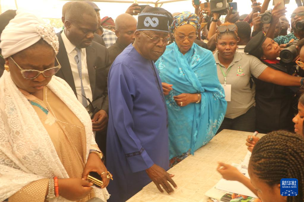 Bola Tinubu (2nd L, front), presidential candidate of the governing All Progressives Congress, casts his vote at a polling station in Ikeja, Lagos state, Nigeria, on Feb. 25, 2023. Nigeria's presidential and parliamentary elections kicked off Saturday as voters went to the polls nationwide to elect a new president and members of the national assembly. (Photo by Emma Osodi/Xinhua)
