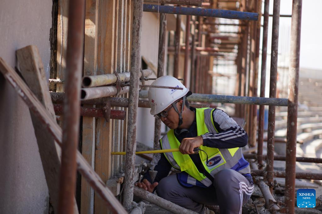 A construction worker is engaged in a China-financed rehabilitation project at the Leopold Sedar Senghor Stadium in Dakar, Senegal, March 22, 2023.