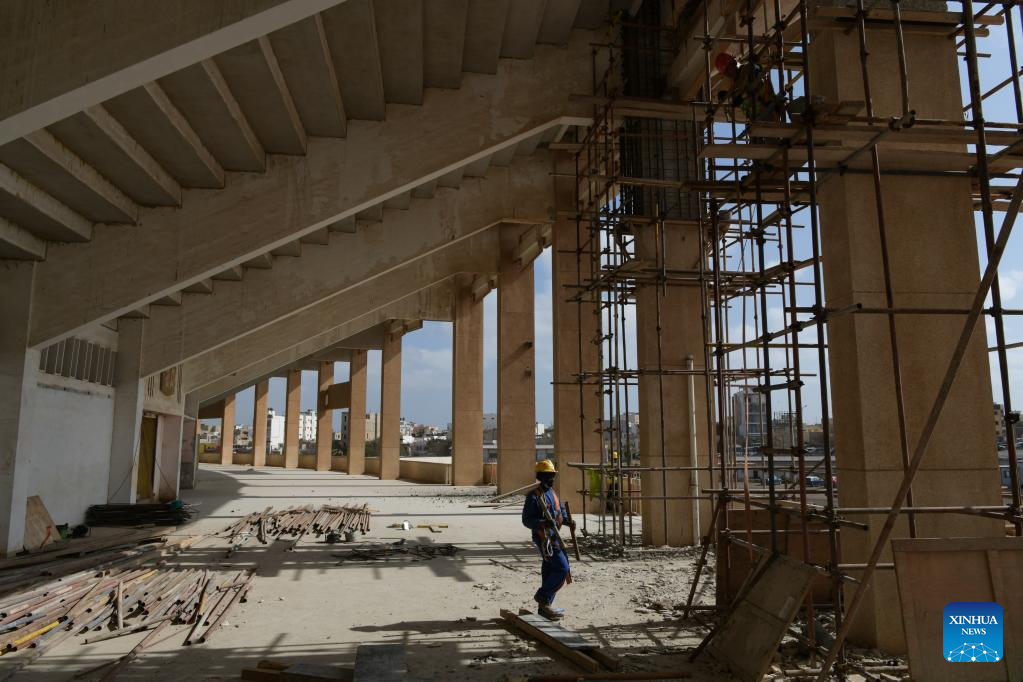 This photo taken on March 22, 2023 shows a China-financed rehabilitation project at the Leopold Sedar Senghor Stadium in Dakar, Senegal.