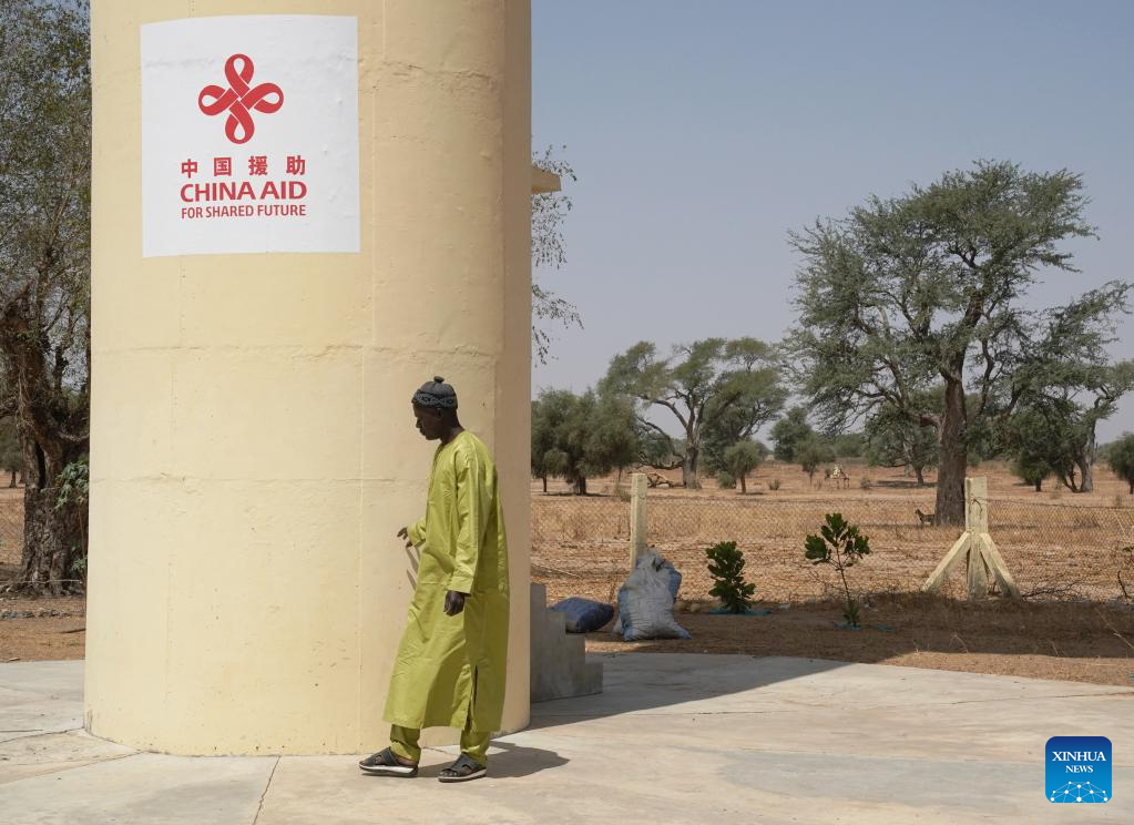 This photo taken on March 20, 2023 shows a general view of a well project in Tenefoul Toucouleur Village, Diourbel, Senegal. Mamadou Dieng, 40, an employee of the Chinese construction company CGCOC Group Senegal Branch, has been responsible for maintaining a Chinese-aided well in Tenefoul Toucouleur Village. Checking the machine's functions and filling the engine with diesel, Dieng's work may seem simple and tedious, but means a lot to the locals.