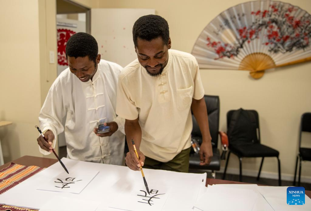A teacher gives a lesson during an event celebrating the upcoming UN Chinese Language Day at the Confucius Institute at the University of Johannesburg in Johannesburg, South Africa, on April 19, 2023. (Xinhua/Zhang Yudong)