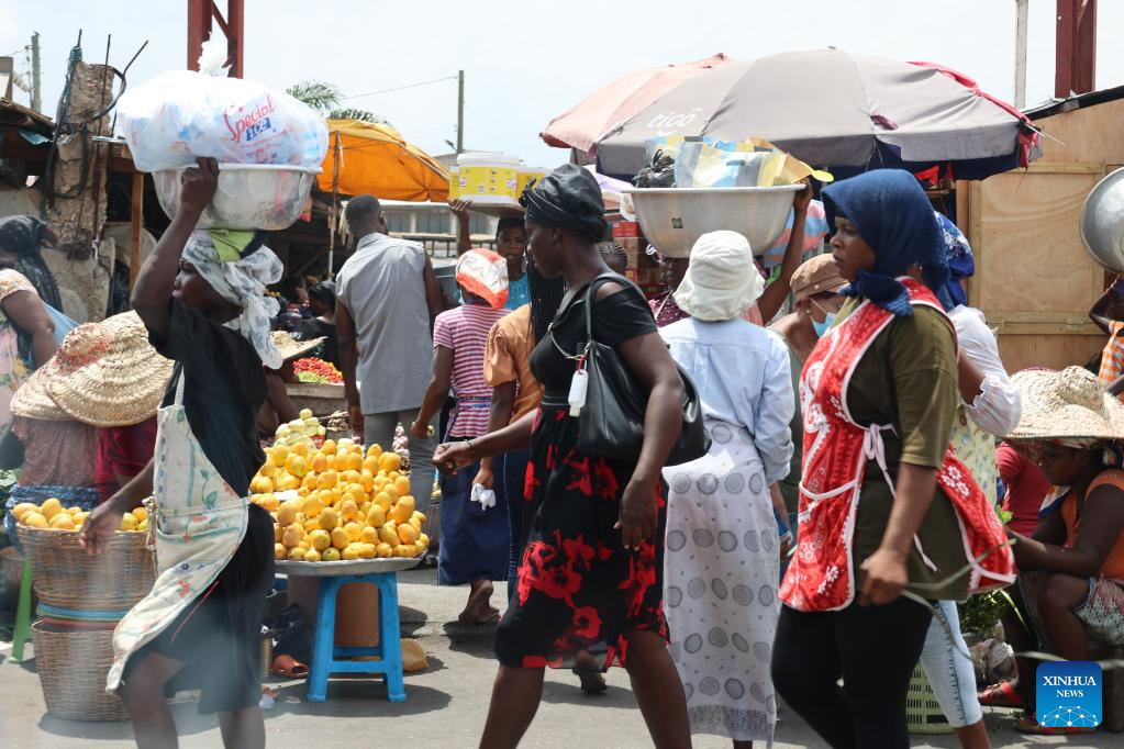 This photo taken on April 19, 2023 shows people shopping at a local market in Accra, capital of Ghana. Ghana recorded a growth rate of 3.1 percent in the gross domestic product (GDP) last year, the Ghana Statistical Service announced Wednesday. (Photo by Seth/Xinhua)