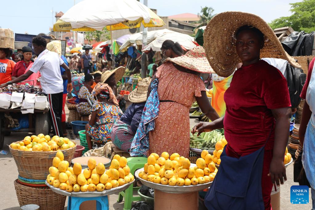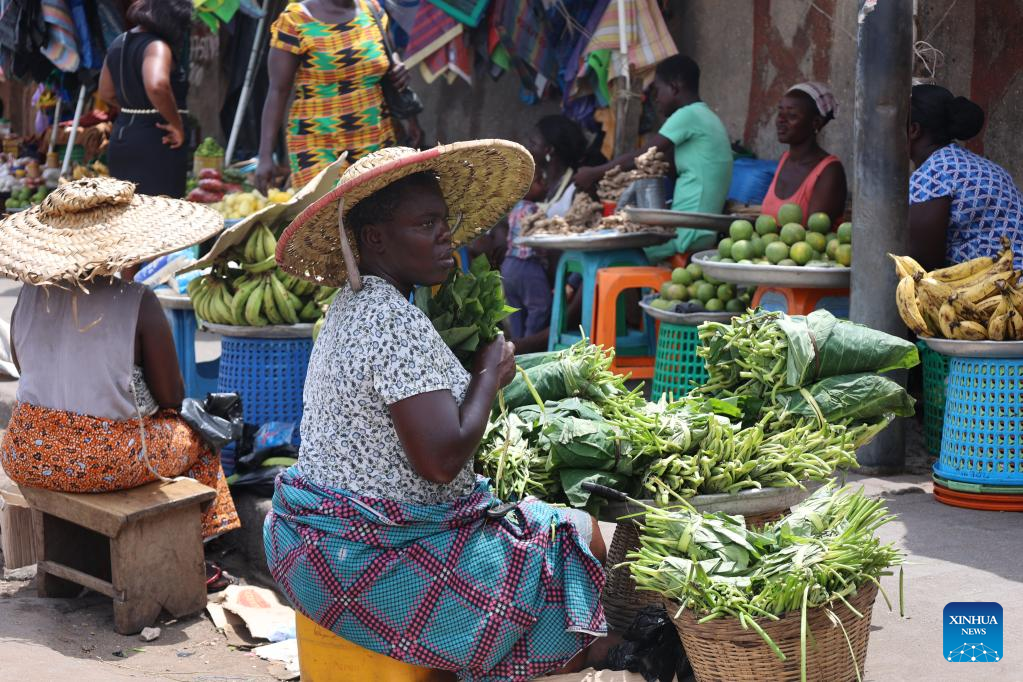 Vendors sell products at a local market in Accra, capital of Ghana, on April 19, 2023. Ghana recorded a growth rate of 3.1 percent in the gross domestic product (GDP) last year, the Ghana Statistical Service announced Wednesday. (Photo by Seth/Xinhua)