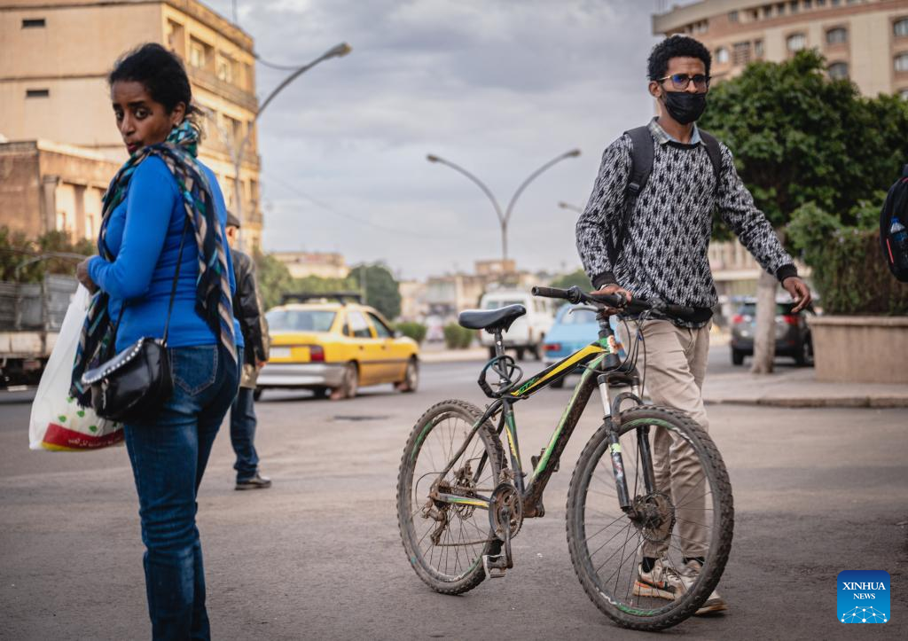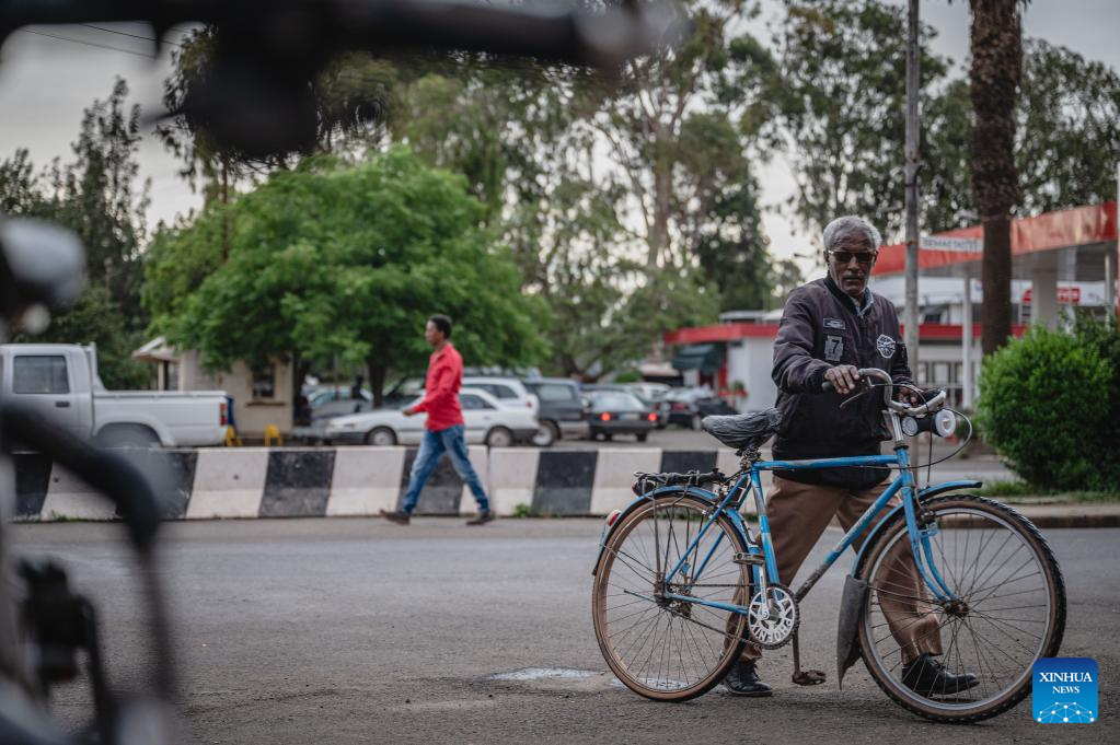 Cyclists ride bikes in Asmara, Eritrea, May 9, 2023. Cycling has been incorporated into locals' life and become a major sport in Eritrea. (Xinhua/Wang Guansen)