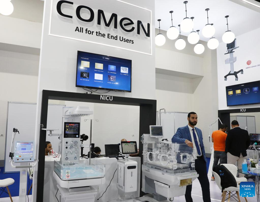 This photo taken on June 8, 2023 shows the booth of China's medical manufacturer Comen Medical Instruments Co., Ltd. at the healthcare exhibition of Africa Health ExCon in Cairo, Egypt. (Xinhua/Ahmed Gomaa)