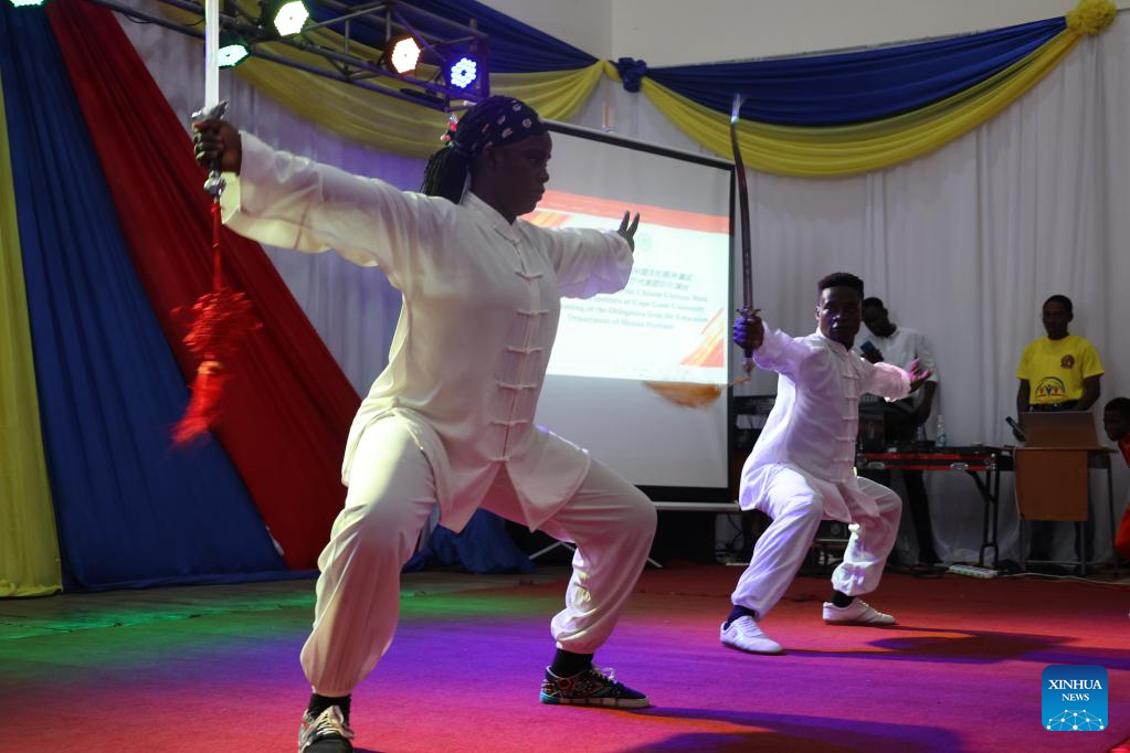 Students perform martial arts during the Chinese culture week in the University of Cape Coast in Cape Coast, Ghana, on June 17, 2023. The University of Cape Coast, one of the most prestigious universities in Ghana, has kicked off its annual Chinese culture week here with spectacular shows and displays. (Photo by Seth/Xinhua)