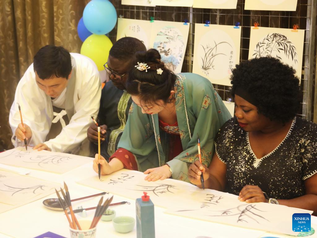 Activities included tea and Chinese food tasting, workshops on Chinese calligraphy, Chinese painting and paper-cutting, and a parade of traditional Chinese costumes presented by teachers and students from the Confucius Institute in the capital of Lome, as well as a free traditional Chinese medicine consultation.
