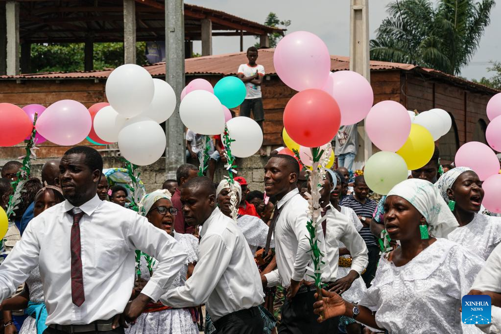 Photo taken on July 12, 2023 shows a view of the Independence Day celebrations in Guadalupe, Sao Tome Island, Sao Tome and Principe. Sao Tome and Principe celebrated the 48th anniversary of its independence here on Wednesday. (Xinhua/Han Xu)