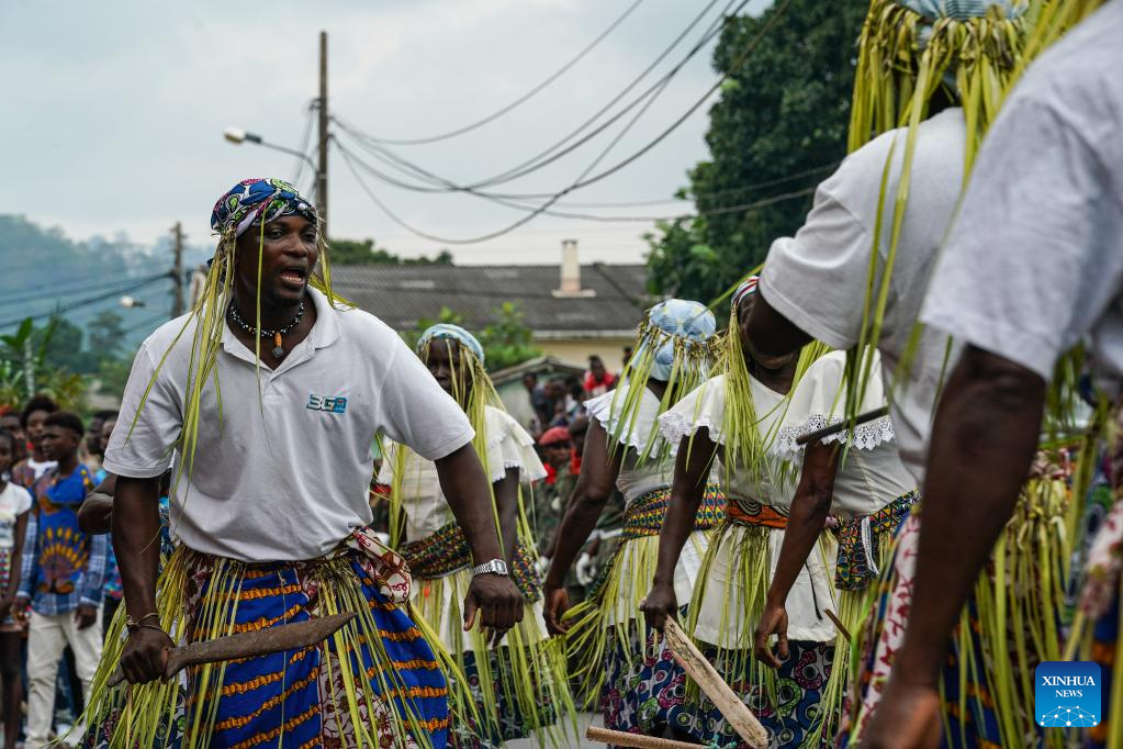 People perform during the Independence Day celebrations in Guadalupe, Sao Tome Island, Sao Tome and Principe, on July 12, 2023. Sao Tome and Principe celebrated the 48th anniversary of its independence here on Wednesday. (Xinhua/Han Xu)