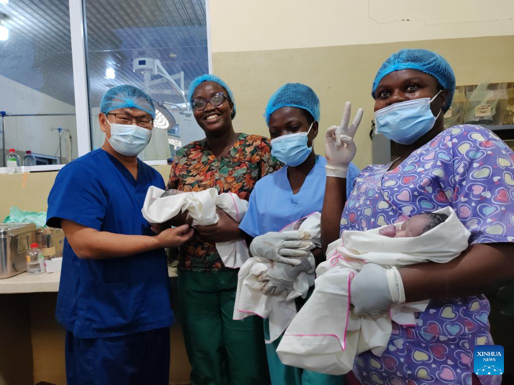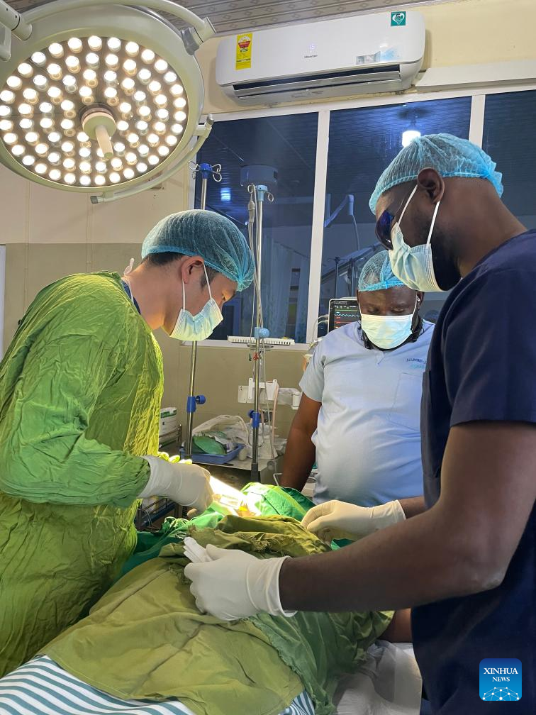 Photo provided by the Chinese medical team to Ghana and taken on July 10, 2023 shows Chinese and Ghanaian doctors performing surgeries at a hospital in Oti Region, Ghana. The 12th batch of the Chinese medical team to Ghana has successfully carried out more than 100 free surgeries on local patients living in some poverty-stricken areas of Ghana's Oti Region, the team told Xinhua on July 18. (Xinhua)