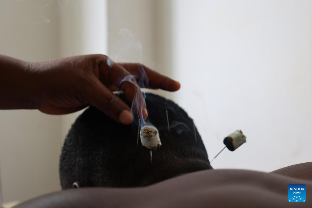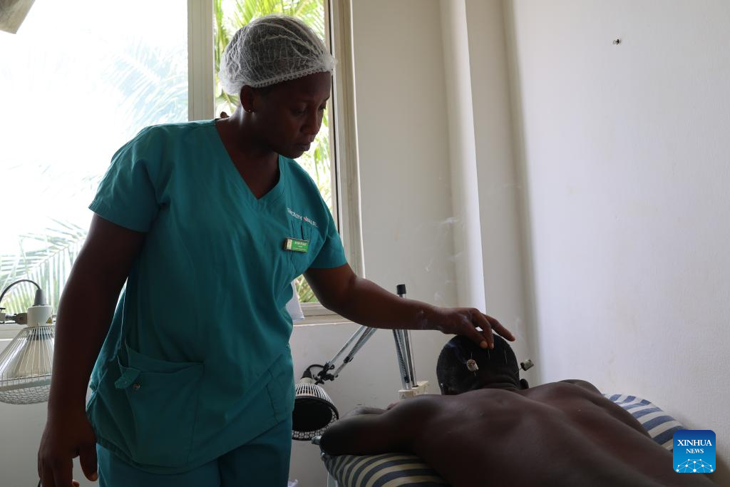 A Ghanian patient receives treatment with traditional Chinese medicine (TCM) at the China-Ghana Friendship Hospital in Accra, Ghana, July 24, 2023.(Photo by Seth/Xinhua)