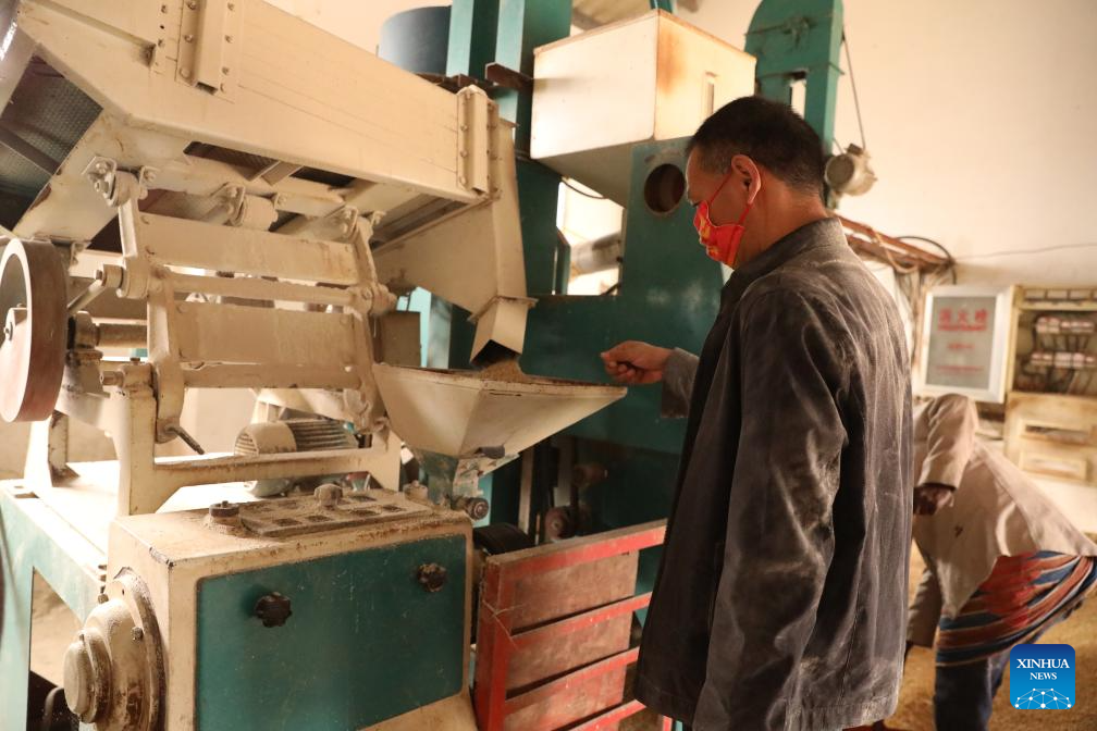 Chinese technician Zhang Haobo processes rice at the China-Mozambique Agricultural Technology Demonstration Center in Boane district of Maputo Province, Mozambique, July 25, 2023. Built in 2010, the demonstration center is an important cooperation project between the Chinese and Mozambican governments. Apart from doing agricultural experiments, the center is also involved in the training of local farmers. (Xinhua/Dong Jianghui)