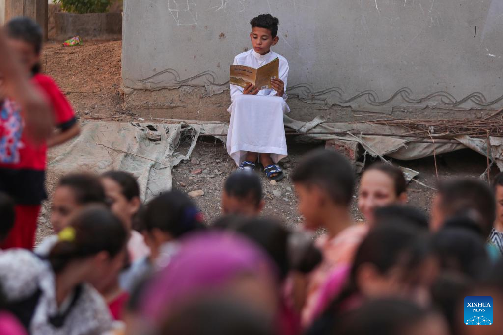 SHARQIA, Egypt, Aug. 4 (Xinhua) -- In Bishat Amer village in northeast Egypt's Sharqia Province, 34-year-old librarian Mohamed Abel-Aziz often sees dozens of children filling the entrance and hallway stairs of his house, where they read, draw, or practise handwriting.