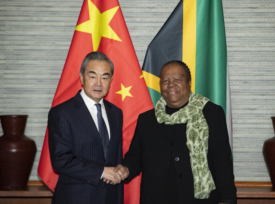 Wang Yi (L), director of the Office of the Communist Party of China Central Commission for Foreign Affairs, meets with South Africa's Minister of International Relations and Cooperation Naledi Pandor in Johannesburg, South Africa, July 24, 2023. (Xinhua/Zhang Yudong)