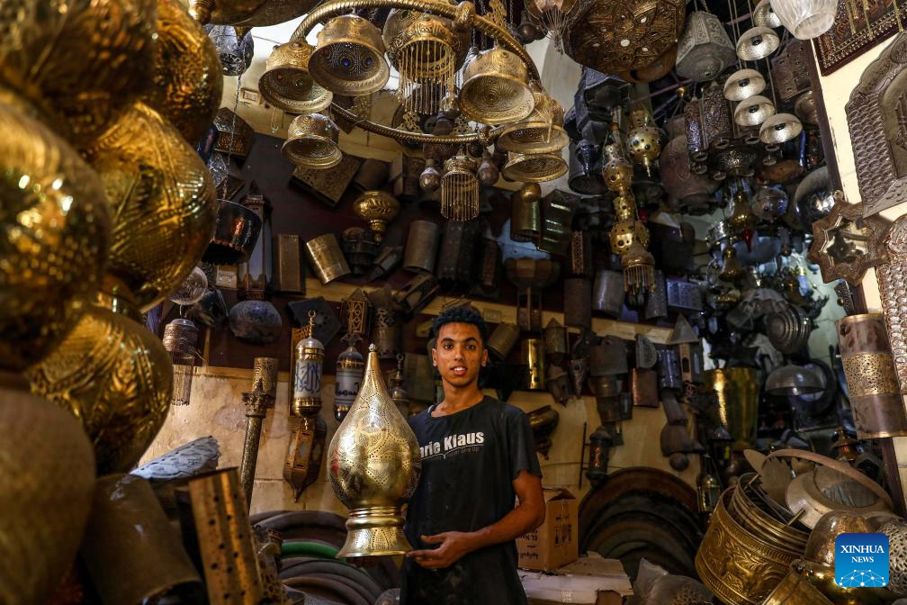 A shopkeeper arranges copper products in Cairo, Egypt, on Aug. 13, 2023. (Xinhua/Ahmed Gomaa)