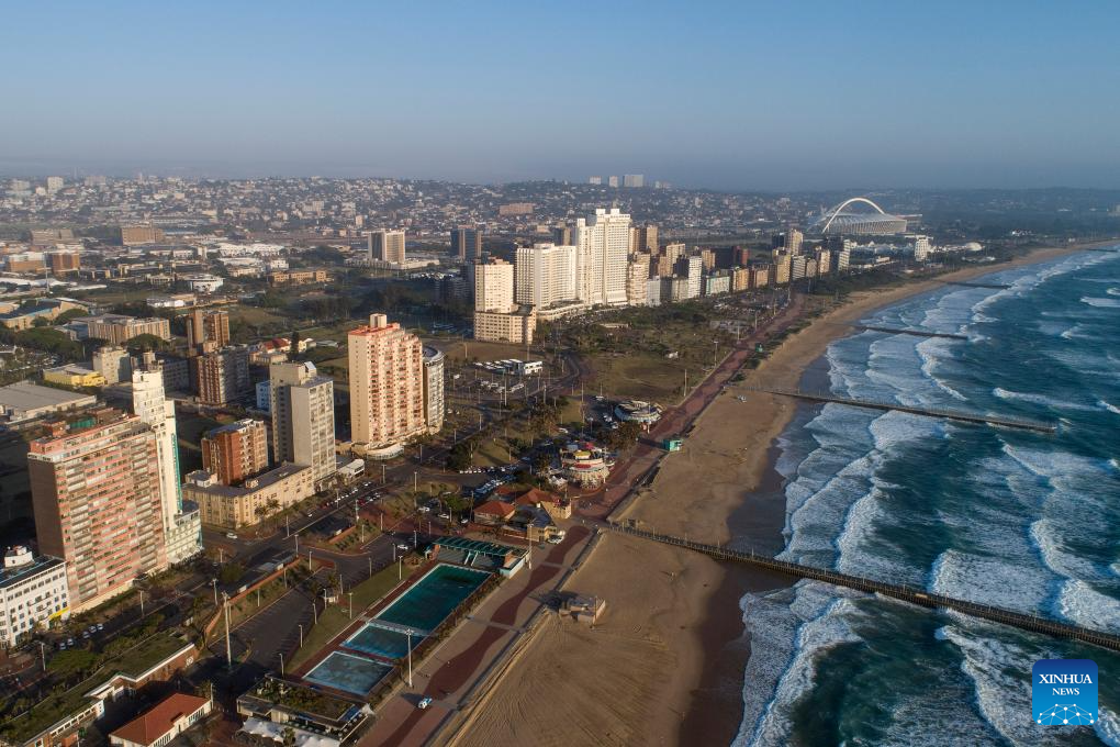 This aerial photo taken on Oct. 18, 2019 shows a city view of Durban, South Africa. South Africa, to hold the 15th BRICS summit this month, is the southernmost country in Africa. It is the only country in the world with three capitals, with Pretoria as its administrative capital, Cape Town as its legislative capital and Bloemfontein the judicial capital. Other major cities include Johannesburg and Durban.