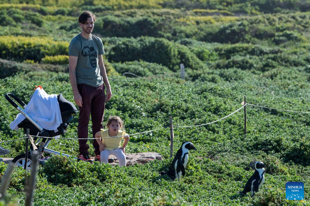 Tourists look at African penguins at the Stony Point Nature Reserve in Betty's Bay, Western Cape Province, South Africa, March 30, 2019. South Africa, to hold the 15th BRICS summit this month, is the southernmost country in Africa. It is the only country in the world with three capitals, with Pretoria as its administrative capital, Cape Town as its legislative capital and Bloemfontein the judicial capital. Other major cities include Johannesburg and Durban.