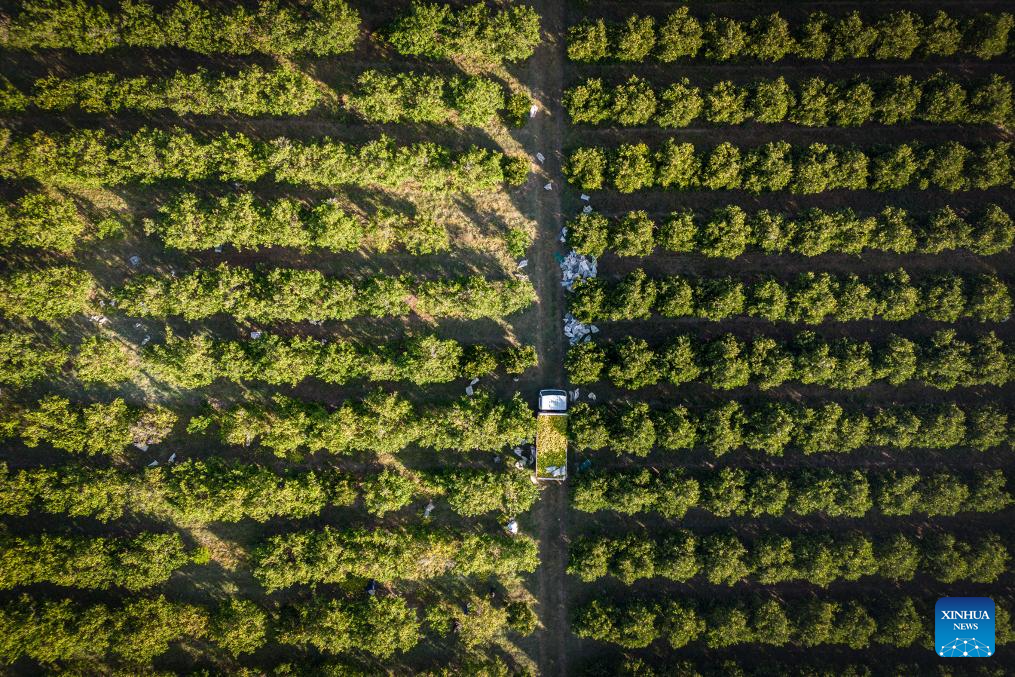 This aerial photo taken on May 24, 2023 shows a citrus farm in Brits, North West Province, South Africa. South Africa, to hold the 15th BRICS summit this month, is the southernmost country in Africa. It is the only country in the world with three capitals, with Pretoria as its administrative capital, Cape Town as its legislative capital and Bloemfontein the judicial capital. Other major cities include Johannesburg and Durban.