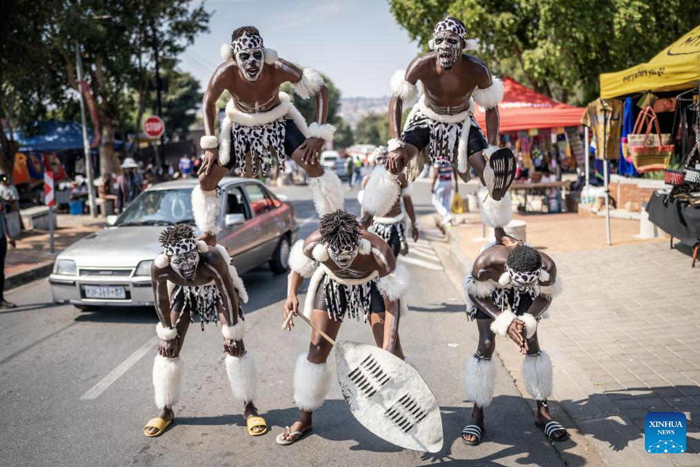 Dancers perform on the street in Soweto, Johannesburg, South Africa, April 27, 2023. South Africa, to hold the 15th BRICS summit this month, is the southernmost country in Africa. It is the only country in the world with three capitals, with Pretoria as its administrative capital, Cape Town as its legislative capital and Bloemfontein the judicial capital. Other major cities include Johannesburg and Durban.