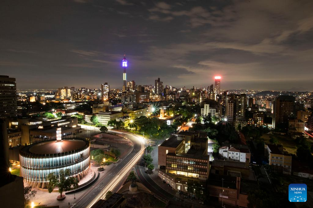This photo taken on Jan. 31, 2023 shows the night view of Johannesburg, South Africa. South Africa, to hold the 15th BRICS summit this month, is the southernmost country in Africa. It is the only country in the world with three capitals, with Pretoria as its administrative capital, Cape Town as its legislative capital and Bloemfontein the judicial capital. Other major cities include Johannesburg and Durban.