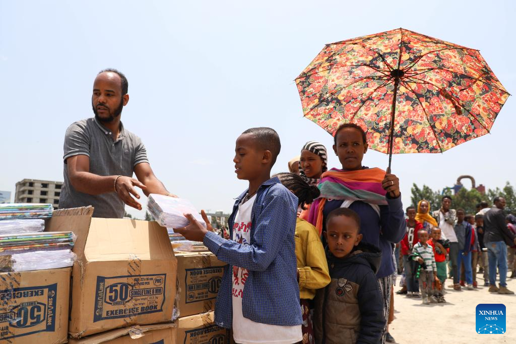 Local people receive donations from Chinese enterprises in Dukem, Oromia regional state of Ethiopia, Sept. 6, 2023. (Xinhua/Michael Tewelde)