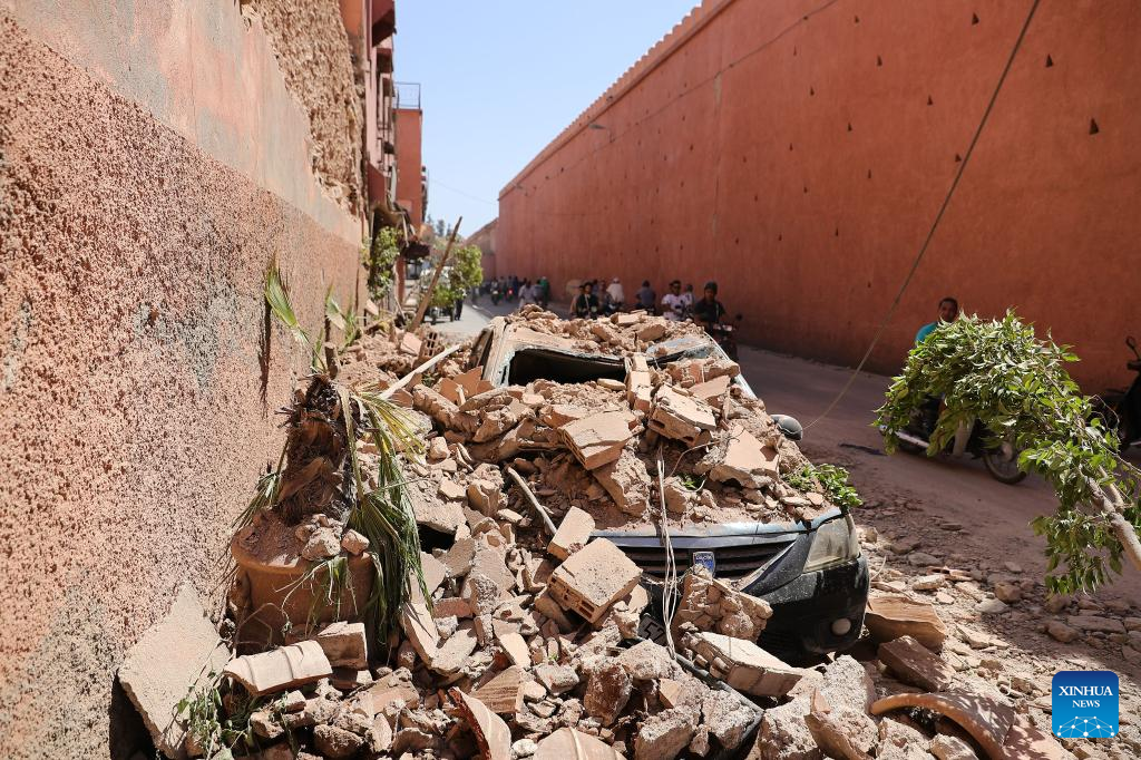 RABAT, Sept. 9 (Xinhua) -- Morocco on Saturday declared three days of national mourning after a devastating earthquake, which jolted the kingdom late Friday night, killed over 1,000 people and injured more than 1,200.