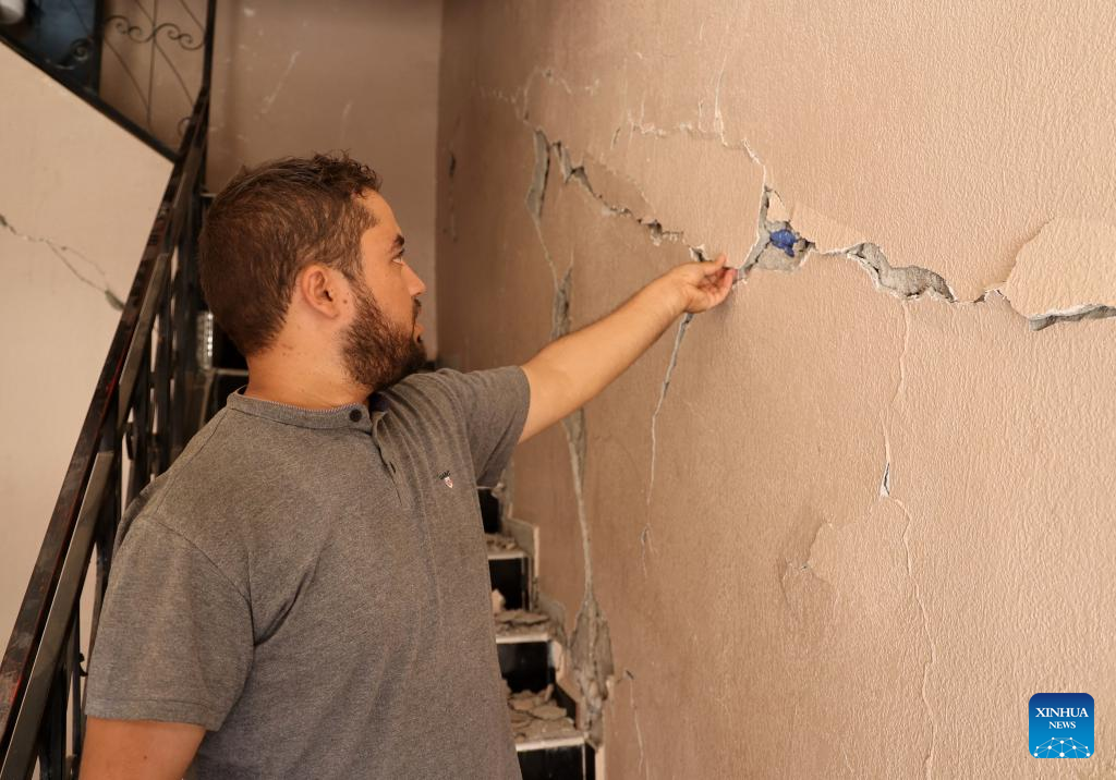 A man shows the damage to his house near the epicenter of an earthquake in Amizmiz, Morocco, Sept. 10, 2023. At least 2,122 people were killed and 2,421 others injured in a quake hitting central Morocco Friday night, according to the latest update from the Moroccan Interior Ministry on Sunday. (Xinhua/Huo Jing)
