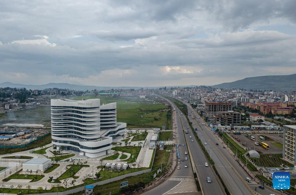 This aerial photo shows the headquarters of the Africa Centers for Disease Control and Prevention (Africa CDC) in Addis Ababa, Ethiopia, Sept. 10, 2023. Located in the southern suburbs of Addis Ababa, the China-aided headquarters of the Africa CDC was officially inaugurated in January 2023.