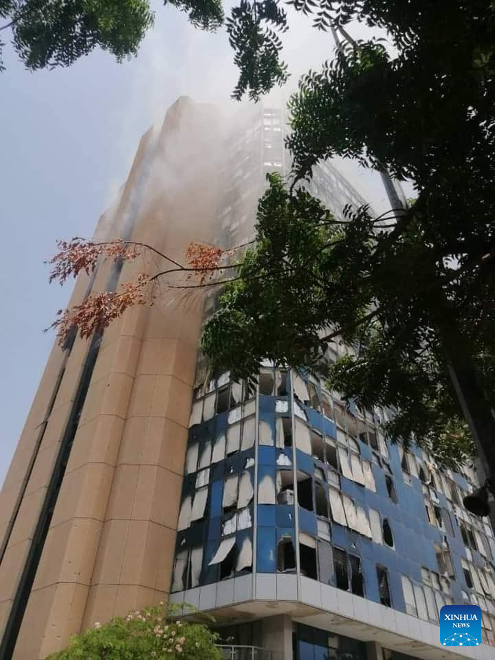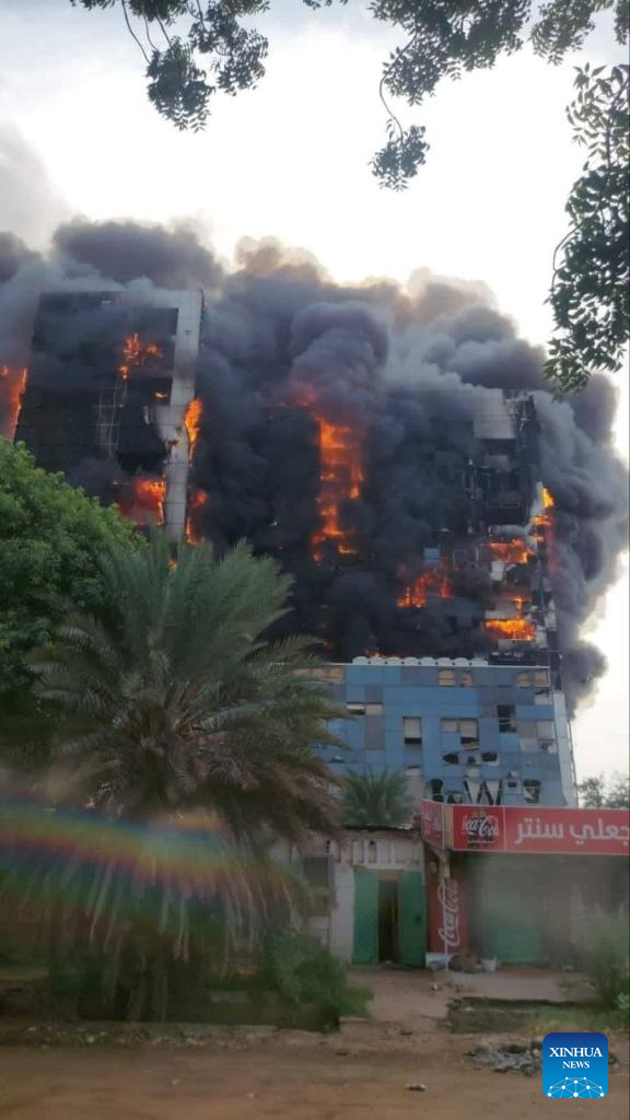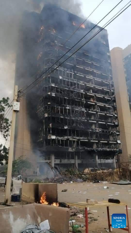 Video clips released on social media platforms on Sunday and Monday, and verified by Xinhua, showed fire and flames engulfing government buildings and headquarters west of the Sudanese army's General Command in central Khartoum.