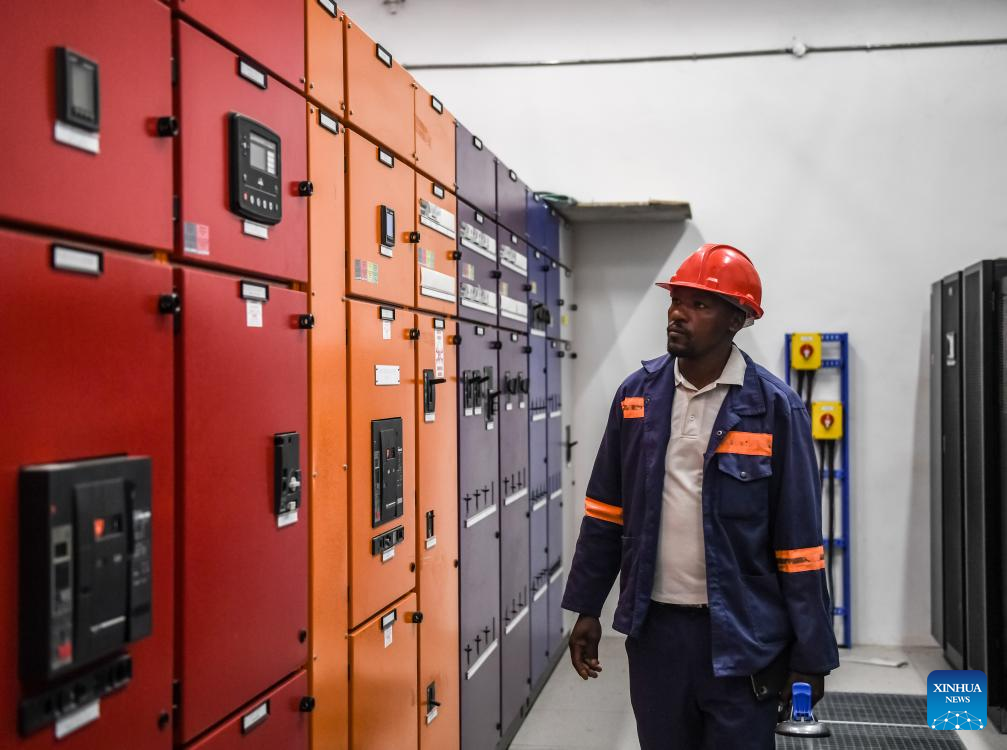 A worker checks facilities at the Main Distribution Board Room in the Digital Delta Data Center in Gaborone, Botswana, Sept. 11, 2023. The Digital Delta Data Center (DDDC) is located in the Botswana Innovation Hub in Gaborone. Undertaken by the Botswanan branch of China Jiangxi International Economic and Technical Cooperation Co.,Ltd. (CJIC), the project includes a two-storey data center building with ancillary facilities. The project is expected to be delivered to Botswana Fibre Networks (BoFiNet) in October 2023. (Xinhua/Li Yahui)