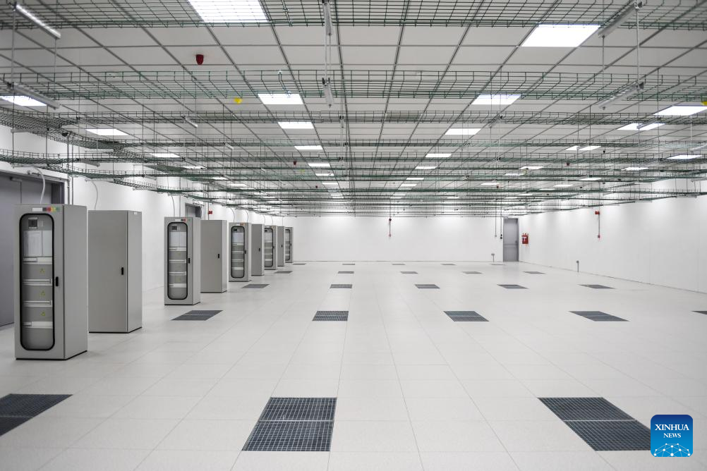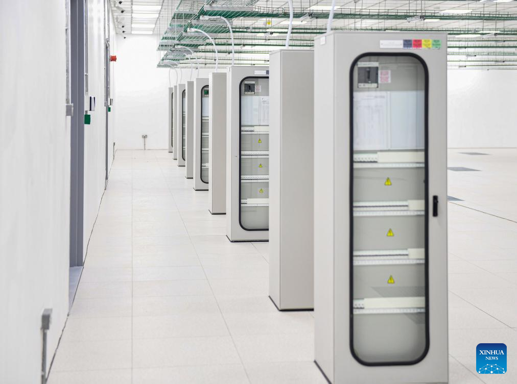 This photo taken on Sept. 11, 2023 shows a view of the white space in the Digital Delta Data Center in Gaborone, Botswana. The Digital Delta Data Center (DDDC) is located in the Botswana Innovation Hub in Gaborone. Undertaken by the Botswanan branch of China Jiangxi International Economic and Technical Cooperation Co.,Ltd. (CJIC), the project includes a two-storey data center building with ancillary facilities. The project is expected to be delivered to Botswana Fibre Networks (BoFiNet) in October 2023. (Xinhua/Li Yahui)