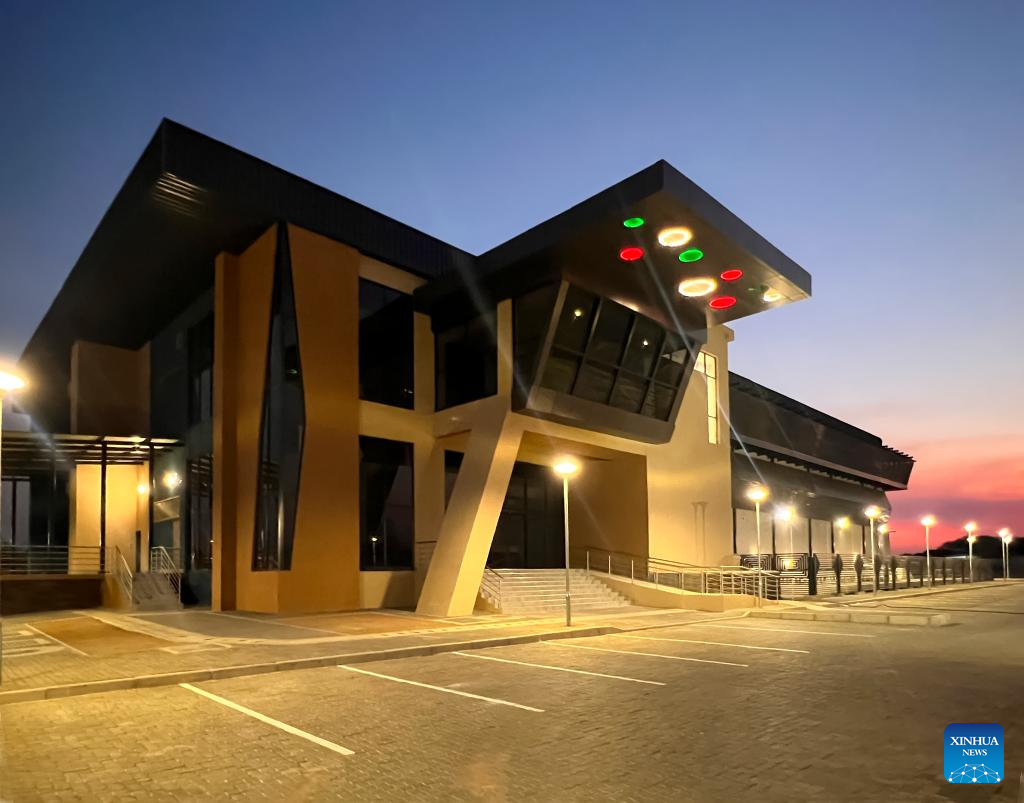 This photo taken on Sept. 18, 2023 shows a night view of the Digital Delta Data Center in Gaborone, Botswana. The Digital Delta Data Center (DDDC) is located in the Botswana Innovation Hub in Gaborone. Undertaken by the Botswanan branch of China Jiangxi International Economic and Technical Cooperation Co.,Ltd. (CJIC), the project includes a two-storey data center building with ancillary facilities. The project is expected to be delivered to Botswana Fibre Networks (BoFiNet) in October 2023. (CJIC Botswanan branch/Handout via Xinhua)