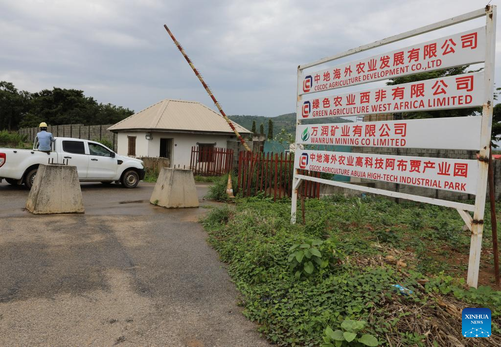 This photo taken on Sept. 19, 2023 shows the entrance to the CGCOC Agriculture Abuja High-tech Industrial Park in Abuja, Nigeria. The China-aided Nigerian Agricultural Technology Demonstration Center is located in the CGCOC Agriculture Abuja High-tech Industrial Park in Abuja. Construction of the project started in March 2021 and completed in Sept. 2022. China handed over the project to Nigeria on Dec. 6, 2022. (Xinhua/Dong Jianghui)