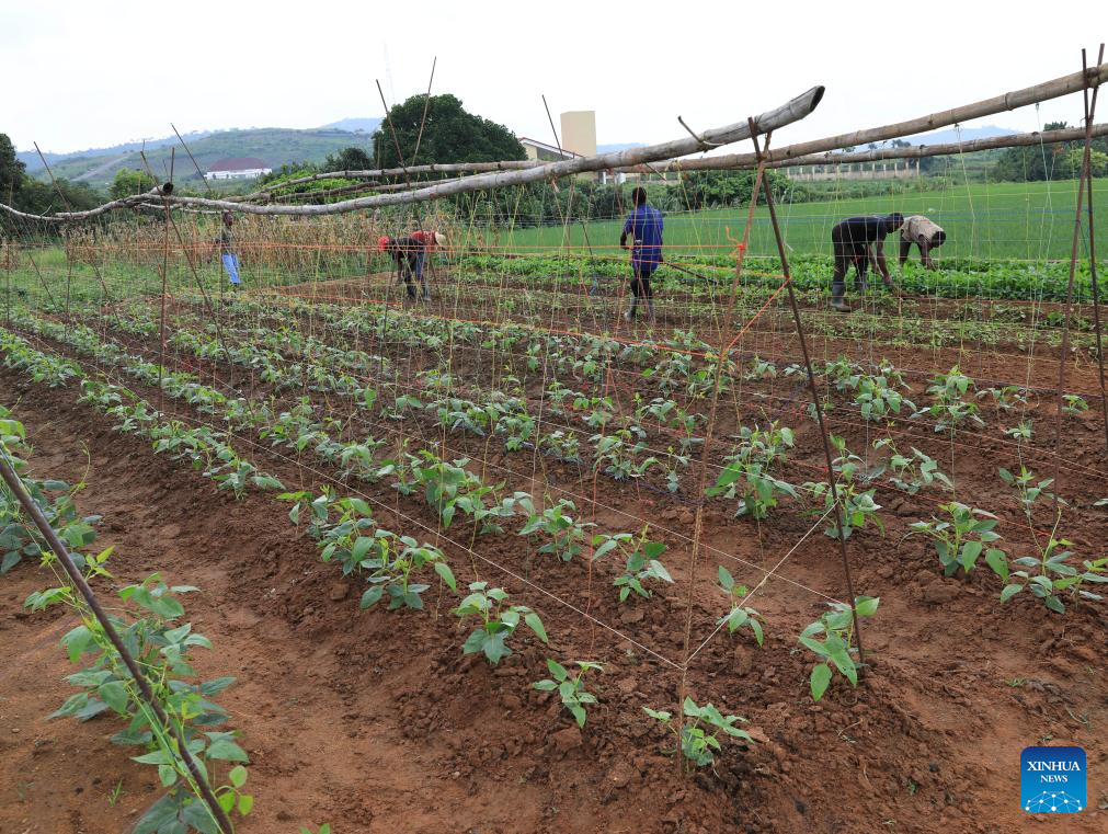 Local employees grow vegetable at the Nigerian Agricultural Technology Demonstration Center in Abuja, Nigeria, Sept. 19, 2023. The China-aided Nigerian Agricultural Technology Demonstration Center is located in the CGCOC Agriculture Abuja High-tech Industrial Park in Abuja. Construction of the project started in March 2021 and completed in Sept. 2022. China handed over the project to Nigeria on Dec. 6, 2022. (Xinhua/Dong Jianghui)