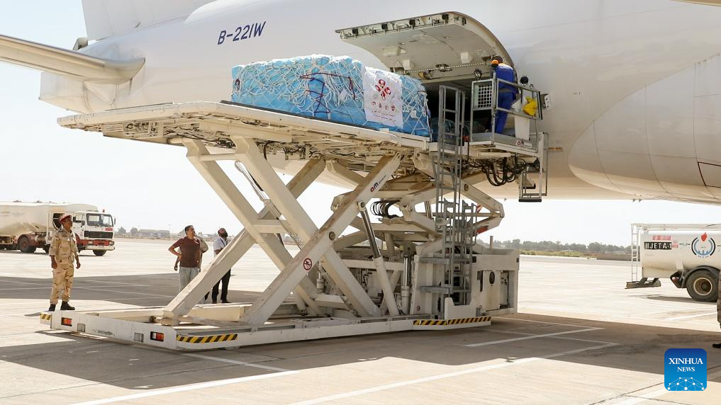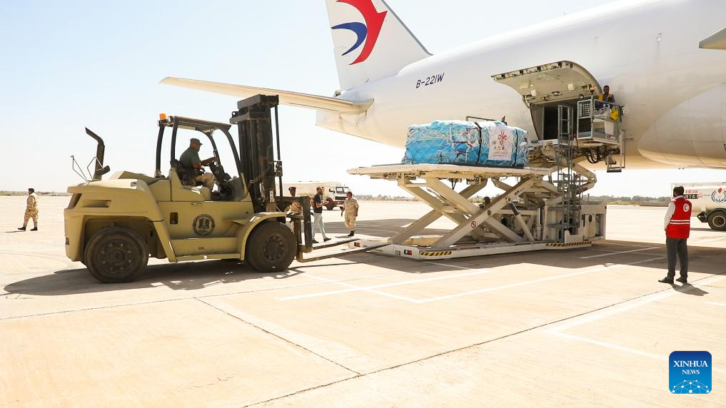 TRIPOLI, Sept. 24 (Xinhua) -- Carrying 90 tons of emergency humanitarian aid to floods-hit Libya, a Chinese cargo plane arrived Sunday at the eastern Libyan city of Benghazi.
