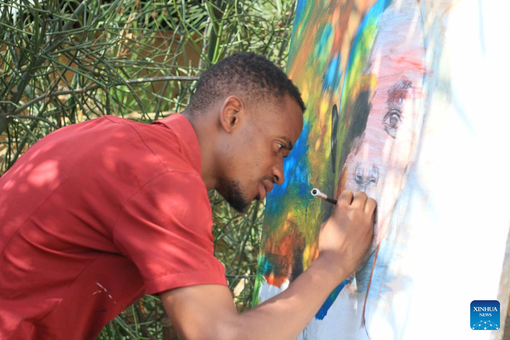 ISINGIRO, Uganda, Oct. 4 (Xinhua) -- When conflict broke out in 2012 in his village in the eastern Democratic Republic of the Congo (DRC), Riziki Musali fled to neighboring Uganda, never to see his family again. Today, as an art creator, Musali uses his talent to express himself and promote peace among fellow refugees in Uganda.