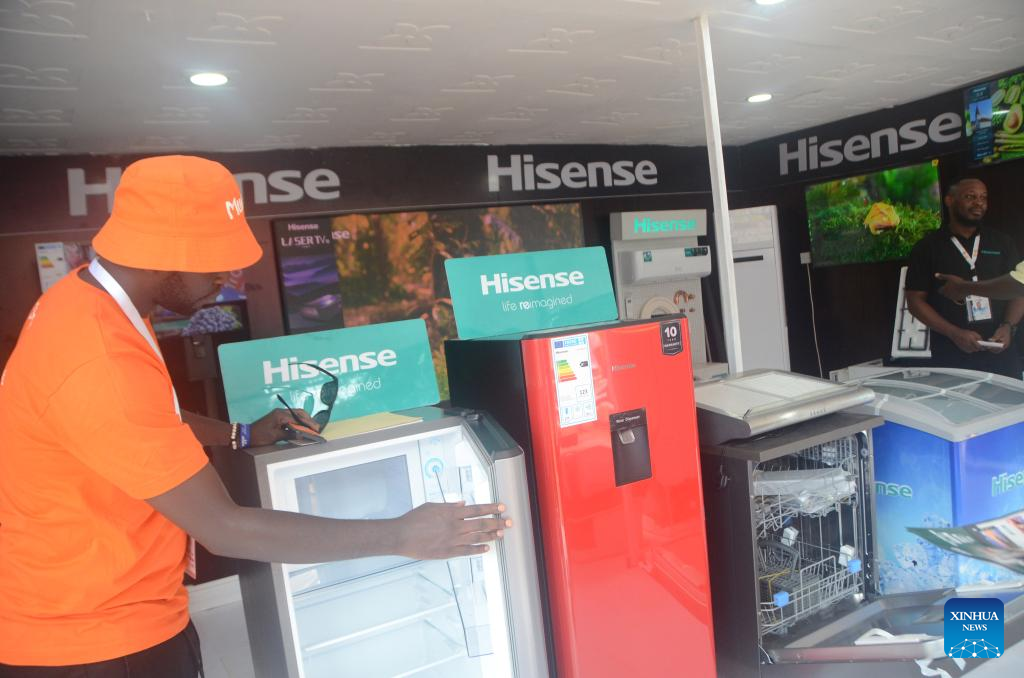 This photo taken on Oct. 4, 2023 shows a booth at the 29th Uganda International Trade Fair (UGITF) in Kampala, Uganda. The 29th UGITF has opened in the Ugandan capital of Kampala, attracting a total of 920 exhibitors from about 30 countries. (Photo by Nicholas Kajoba/Xinhua)