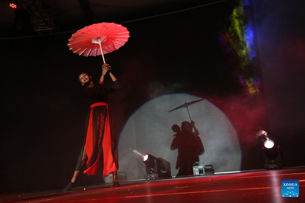 Sharon Emmanuel Munisi, a student at the University of Dar es Salaam, dances during the Chinese Mid-Autumn Festival celebrations in Dar es Salaam, Tanzania, Sept. 29, 2023. (Photo by Herman Emmanuel/Xinhua)