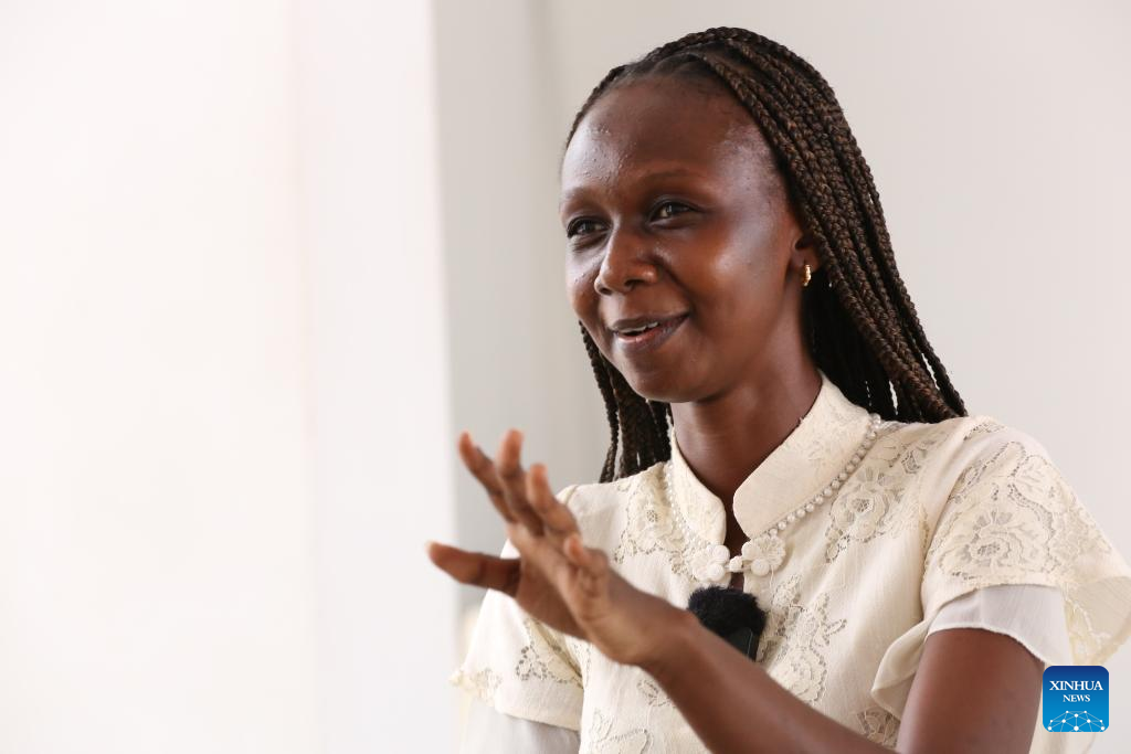 Sharon Emmanuel Munisi, a student at the University of Dar es Salaam, gestures in an interview with Xinhua in Dar es Salaam, Tanzania, Oct. 10, 2023. (Photo by Herman Emmanuel/Xinhua)